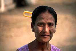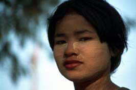 young woman with Thanakha-paste in her face, Bagan