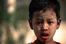 little boy with Thanakha-paste in his face, Bagan