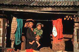 traditional and new clothes (woman & boy), Pa-O, Kalaw hills