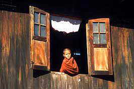young monk looks outside, Kalaw hills