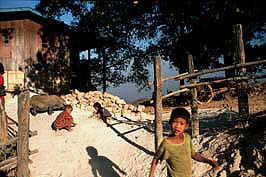 children playing infront hut, pork, Kalaw hills