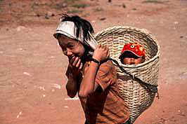 sisters carrying brother backside, Kalaw hills