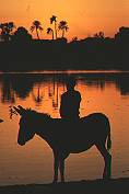 Nile, boy on donkey, sunset
