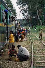 train from Fianarantsoa to Manakara, selling food at stop